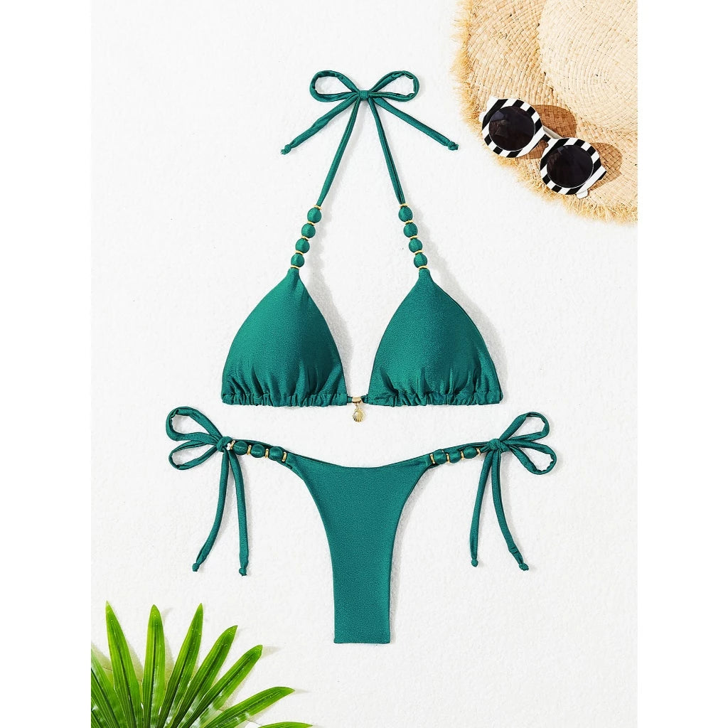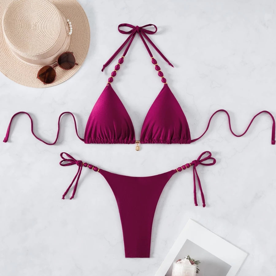Nosso biquíni amarrável é a escolha ideal para quem busca um ajuste flexível e confortável. Com amarrações no top e na calcinha, você pode ajustar conforme o seu gosto, garantindo um caimento perfeito. O tecido de alta qualidade oferece conforto e durabilidade, sendo ideal para aproveitar os dias de sol com estilo.